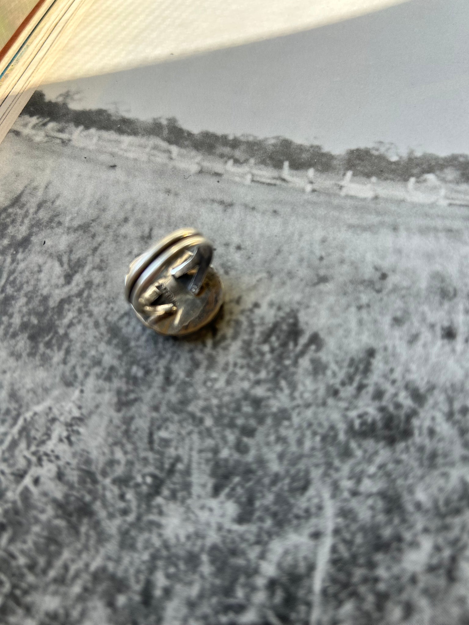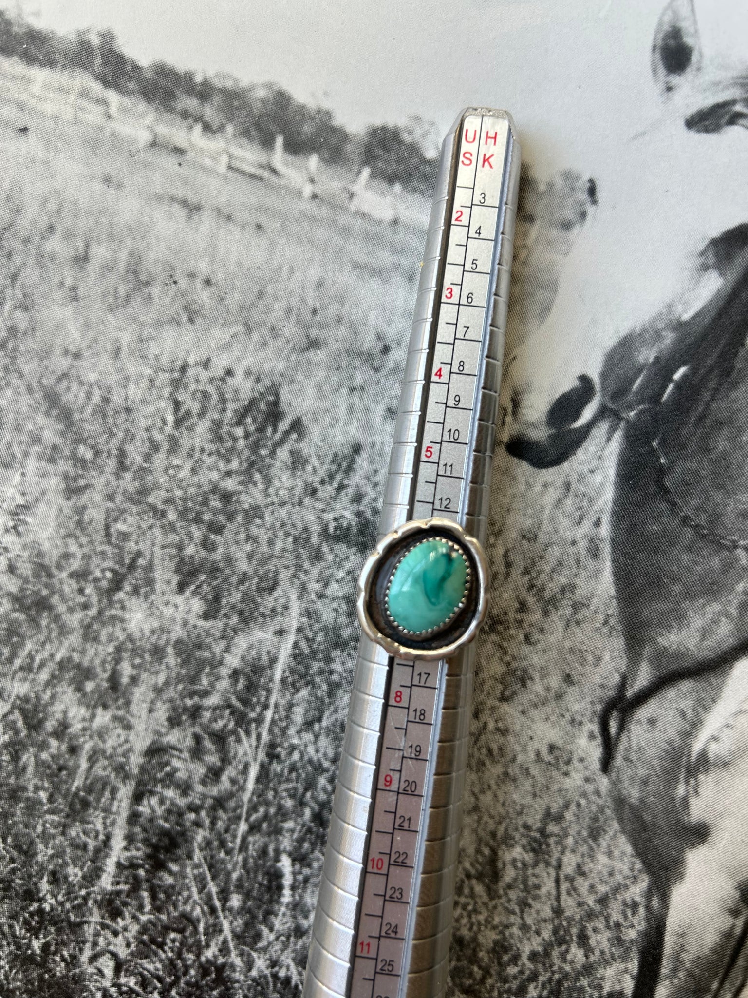 This ring was so fun to make! This Tibetan turquoise cab is bright and truly unique; it's definitely for the girls who love funky pieces of jewelry. This ring is a great size for daily wear and is made with thick-gauge sterling silver to ensure durability. This ring is a size 7 and fits comfortably with a split shank band.