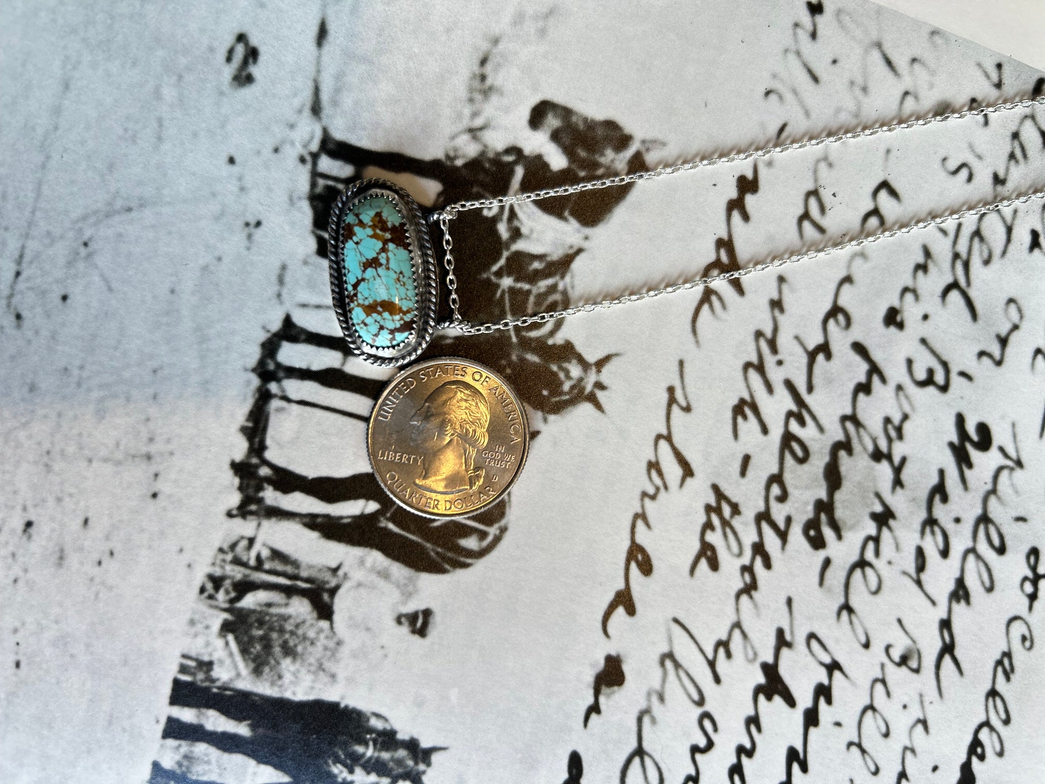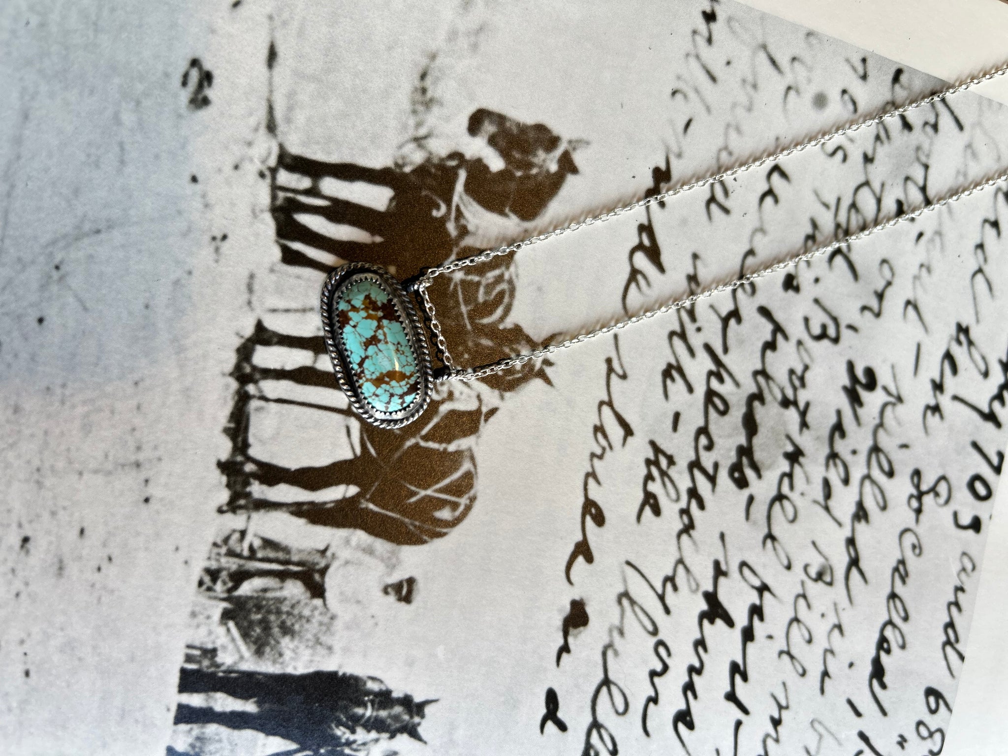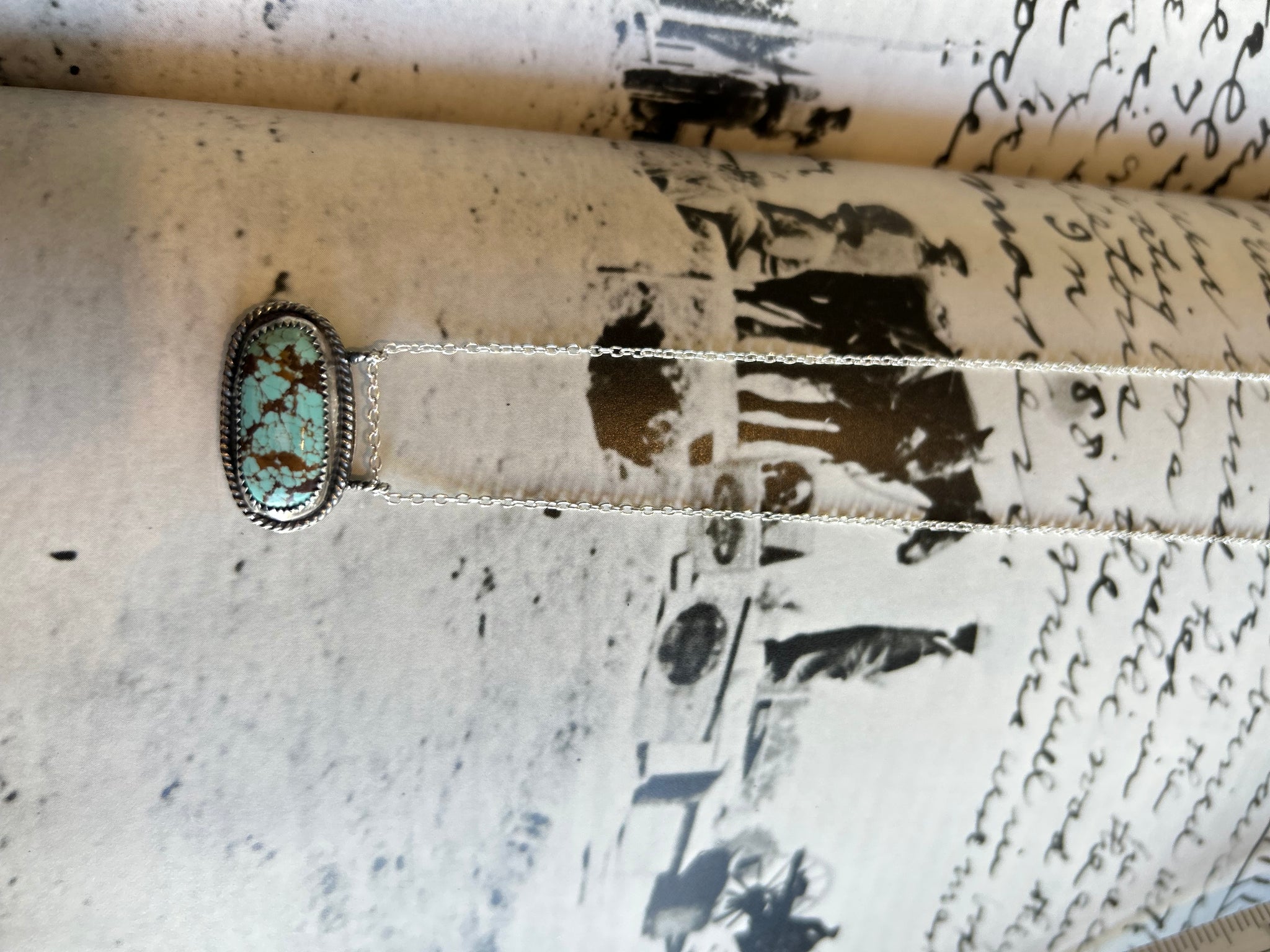 This number 8 stone is absolutely stunning with a bright color and a web matrix. This is a perfect necklace to wear alone or add to your daily stack. The chain is adjustable from 20" 18" and 16".